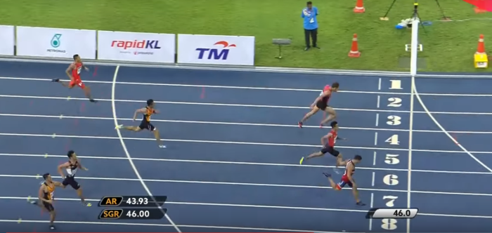 Champs) to win the SEA Games 400m by the narrowest of Margins. Running in Lane 7