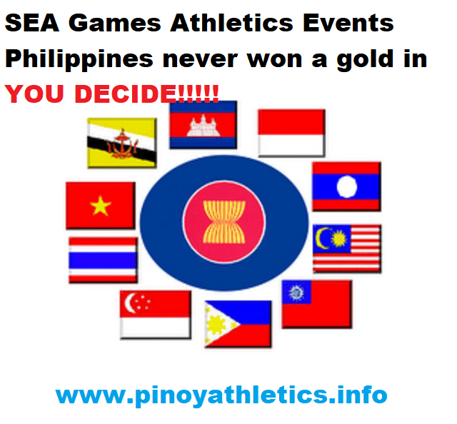 SEA Games Athletics Events Philippines never won a medal in now updated for the year 2017. Since this was written on November 30, 2013. With new crops of athletes, the list of non-gold events in athletics for the Philippines was 16 in 2015, 14 in 2017 and now 12 in 2019.